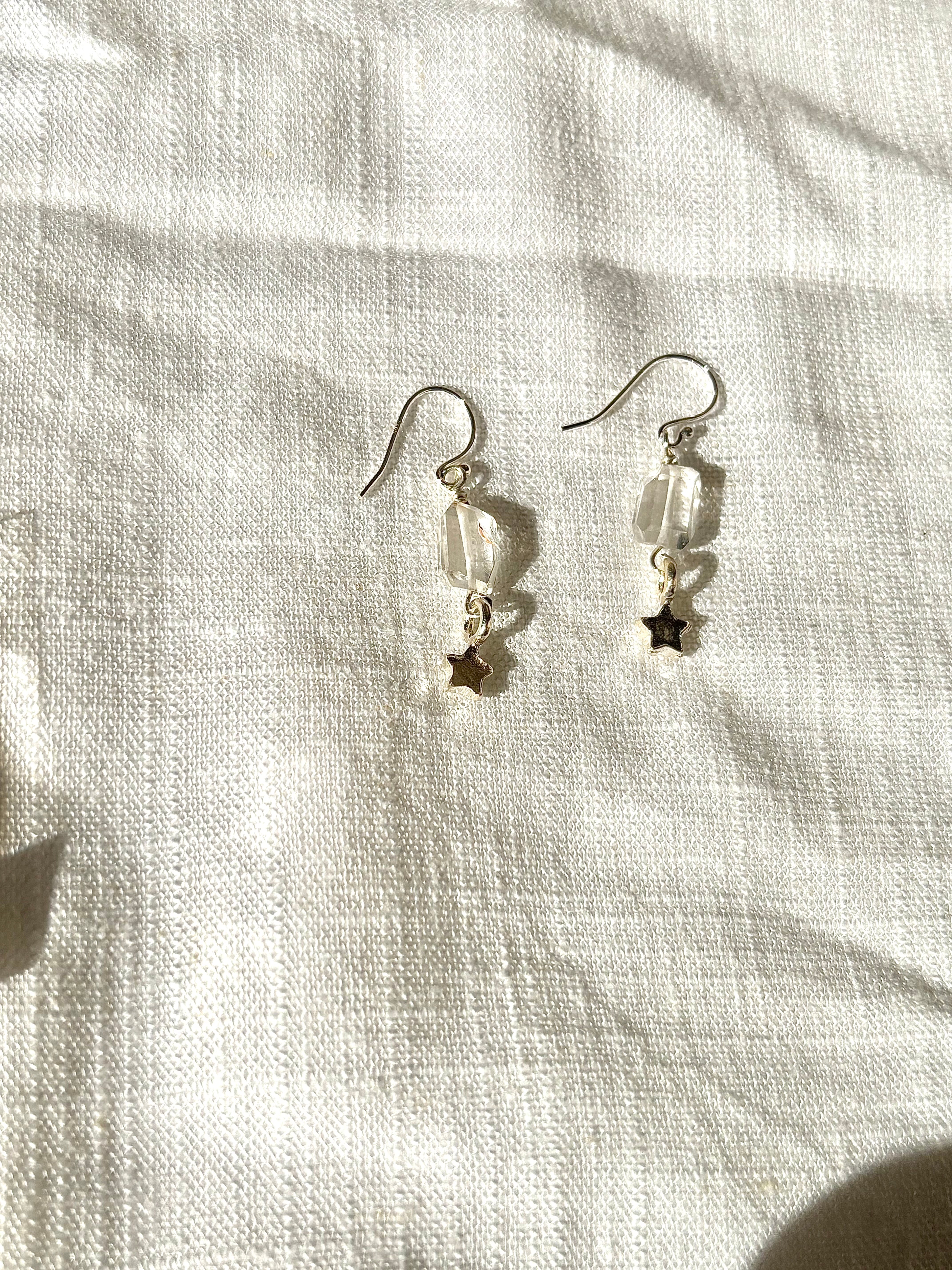 silver925の星型チャームに、クリスタルの煌めきが加わり、シンプルながらも存在感のあるミニピアスです。